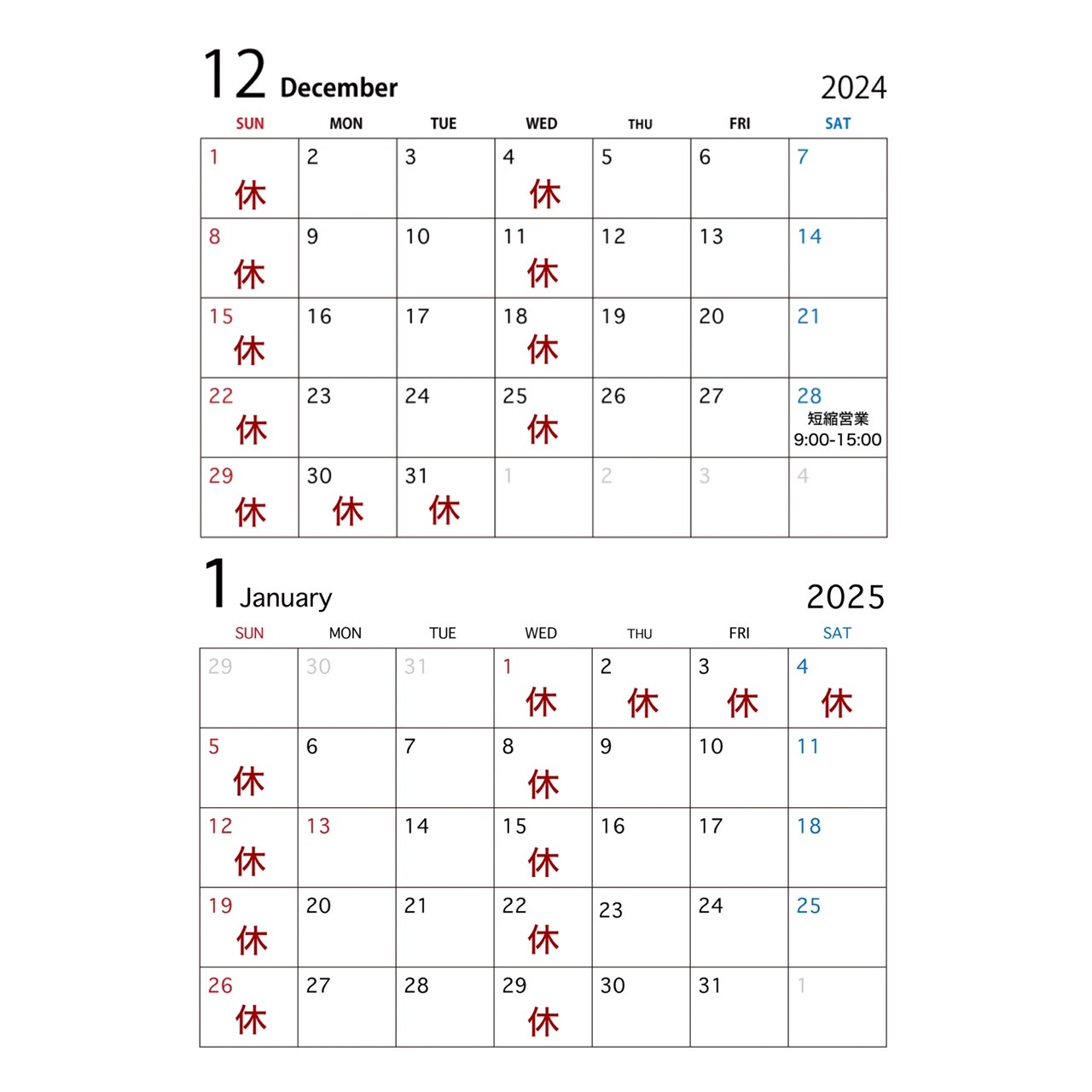 2024年12月29日(日)から2025年1月5日(日)までお休みとなります🙇🏻♀️
