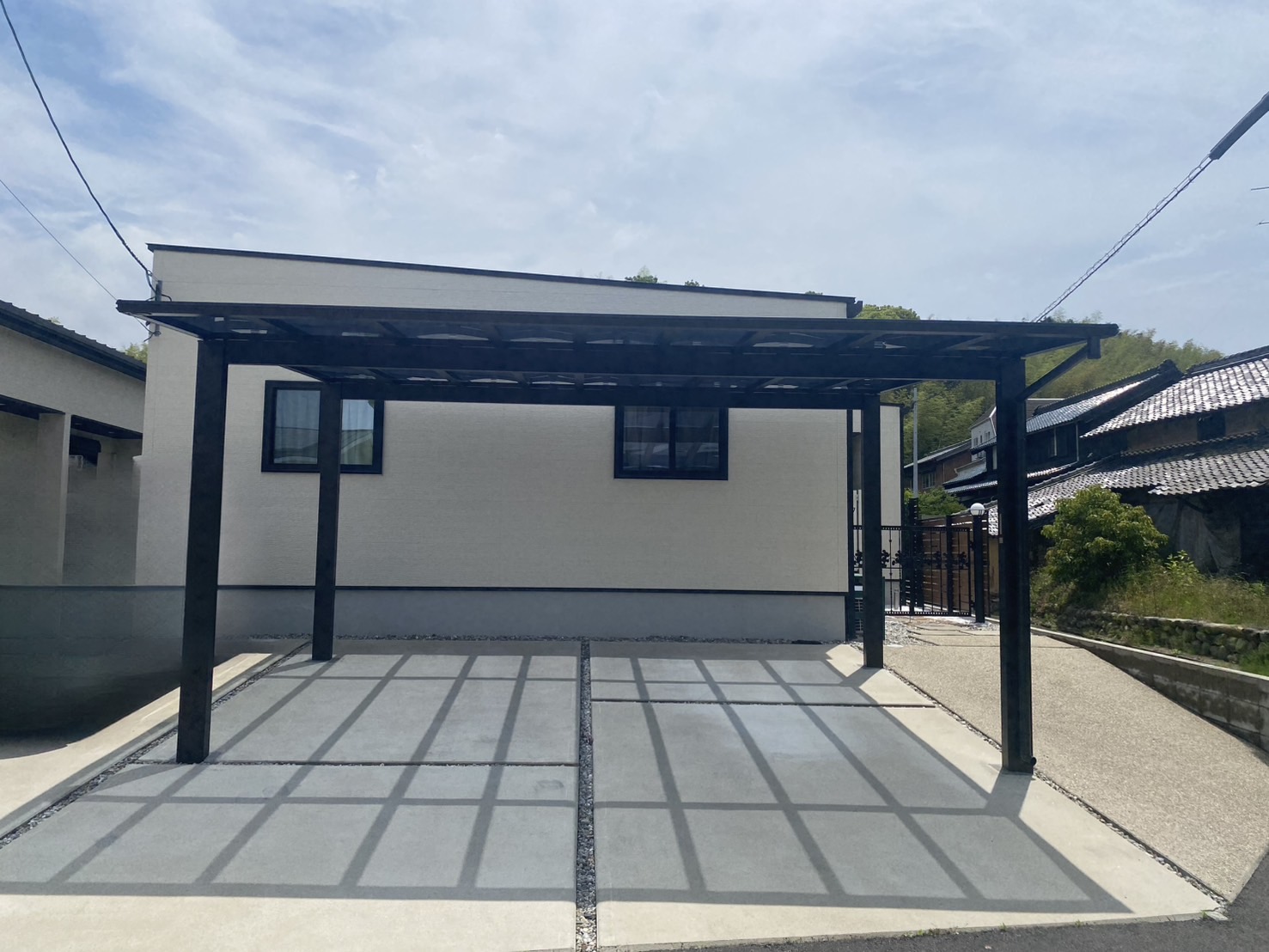 フラットデザインのシンプルなカーポートで、