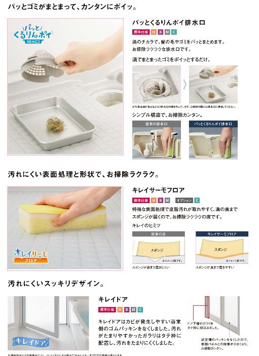 ゴミがまとまり排水を妨げないので、汚れがつきにくい🛀