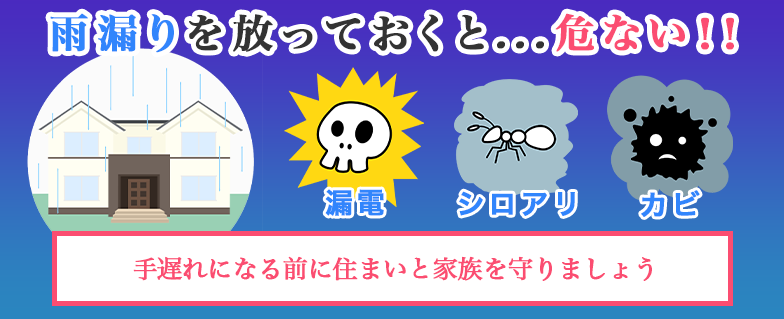 はじめは小さな雨漏りであっても、放置すると高額な修理費用がかかったり、健康被害につながる場合もあります。