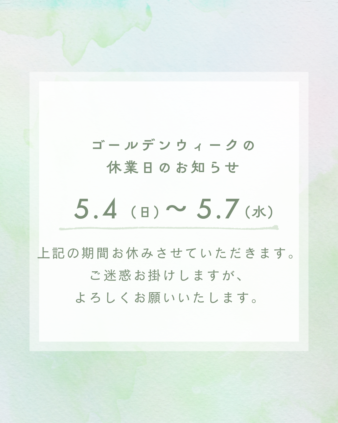 今日はゴールデンウィークのお休みのお知らせです📢