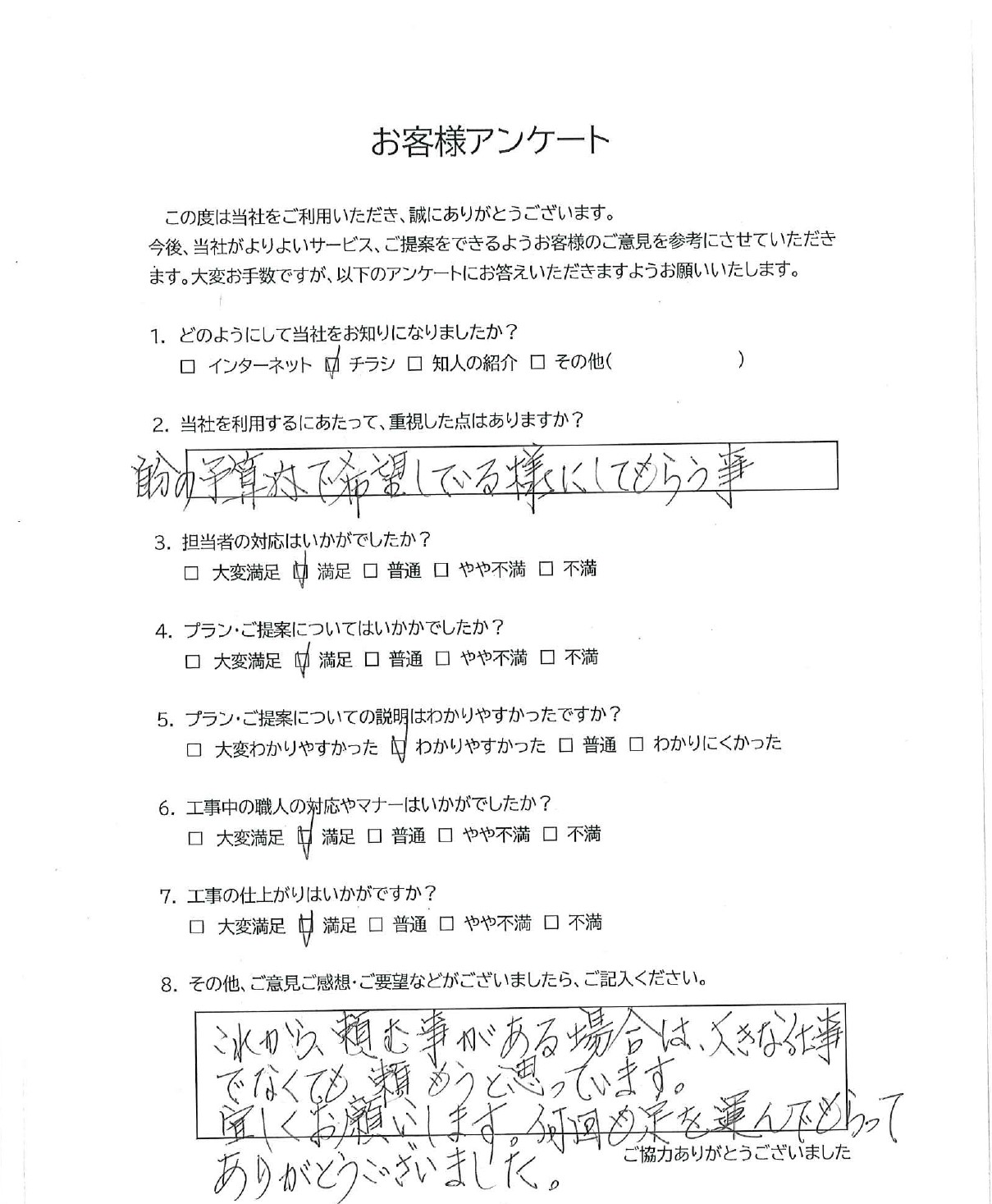 前回リフォームさせて頂きました、K様からのアンケートです😆